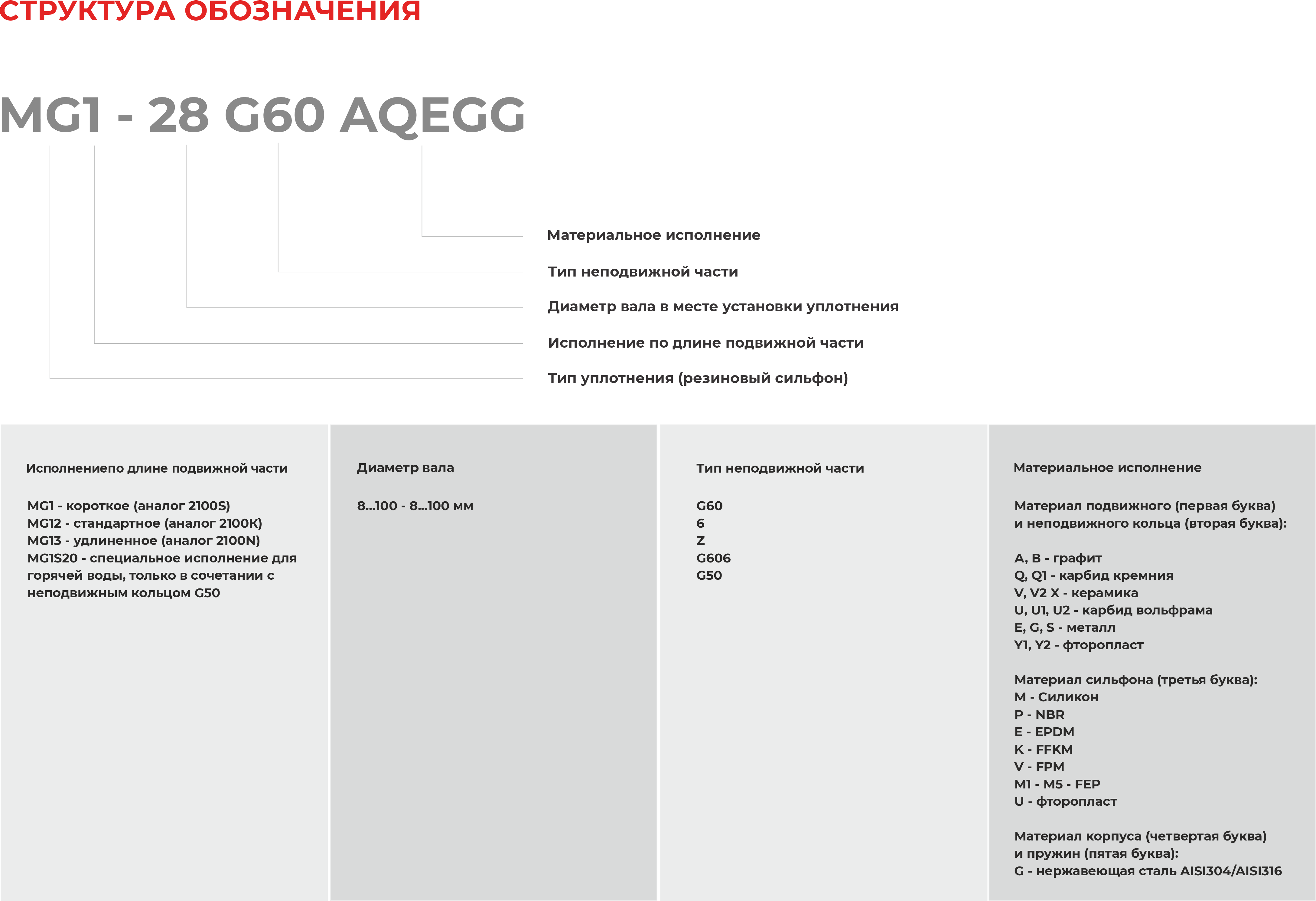 Характеристики торцевого уплотнения MG12-12 G60 BVPGG