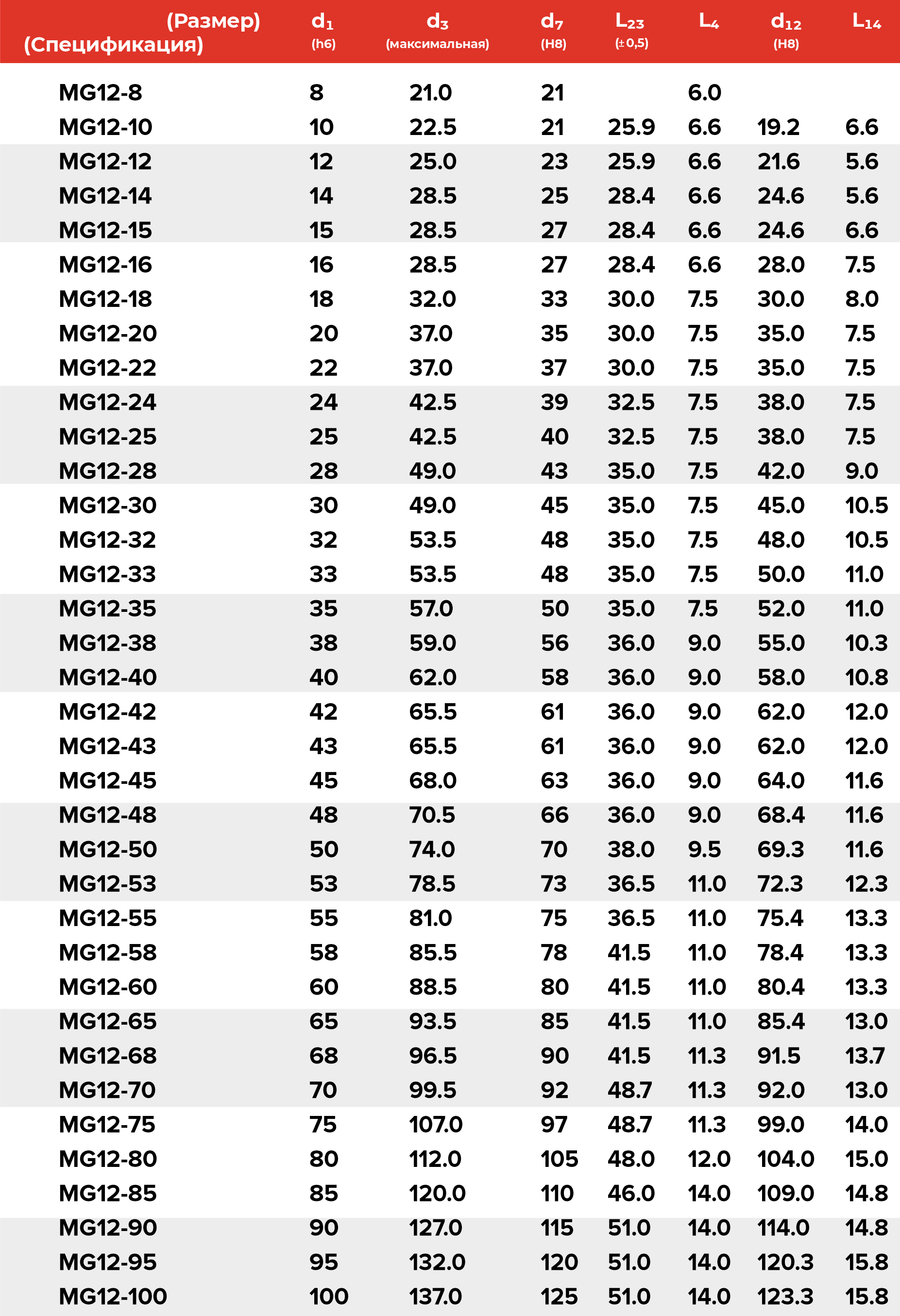 | Диаметр вала, мм | от 10 до 100 |